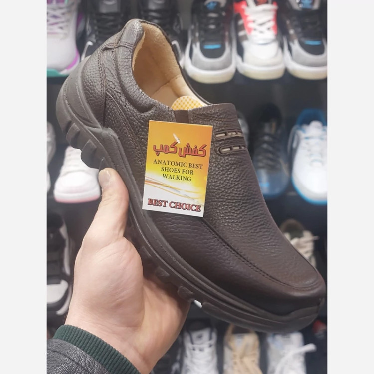 کفش چرم طبیعی مردانه طبی رویه و آستر چرم گاوی و بز، زیره پیو تزریق مستقیم، بغل کش قالی