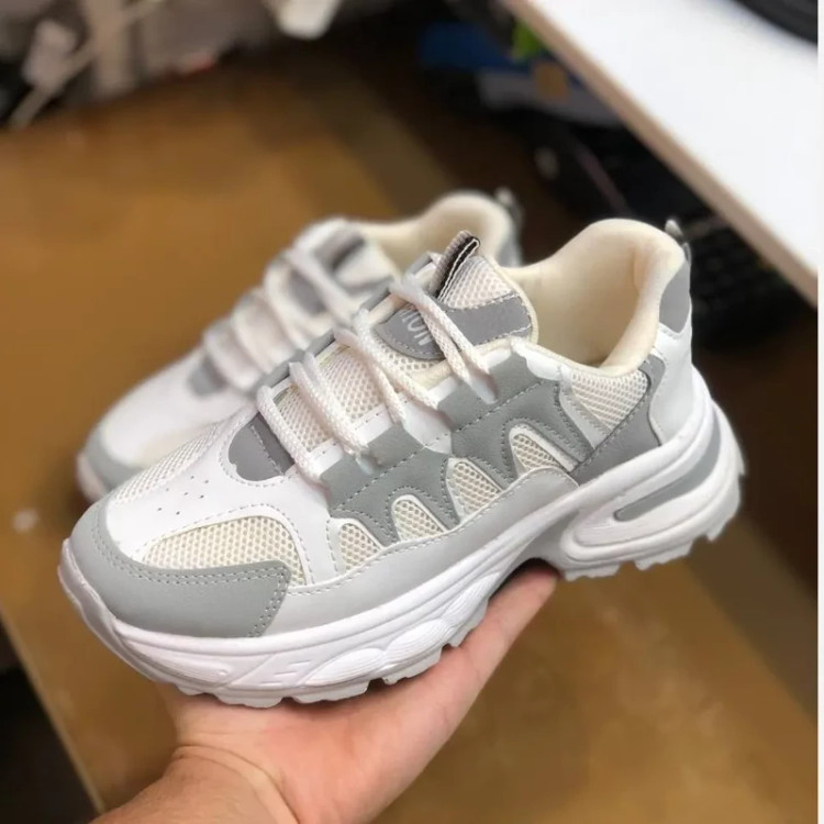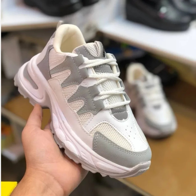 کفش اسپرت سفید طوسی زنانه مدل راحتی و شیک مناسب پیاده روی و باشگاه