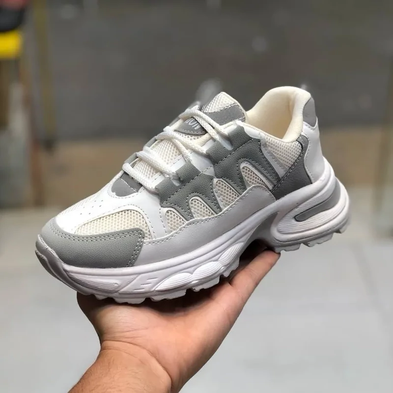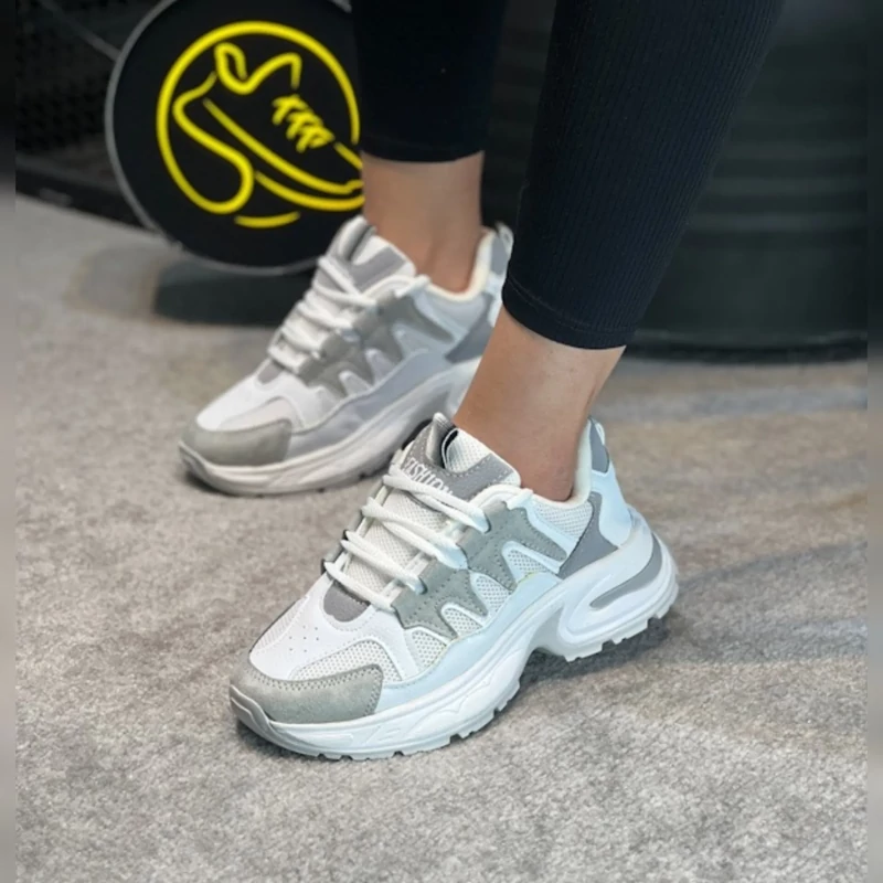 کفش اسپرت سفید طوسی زنانه مدل راحتی و شیک مناسب پیاده روی و باشگاه