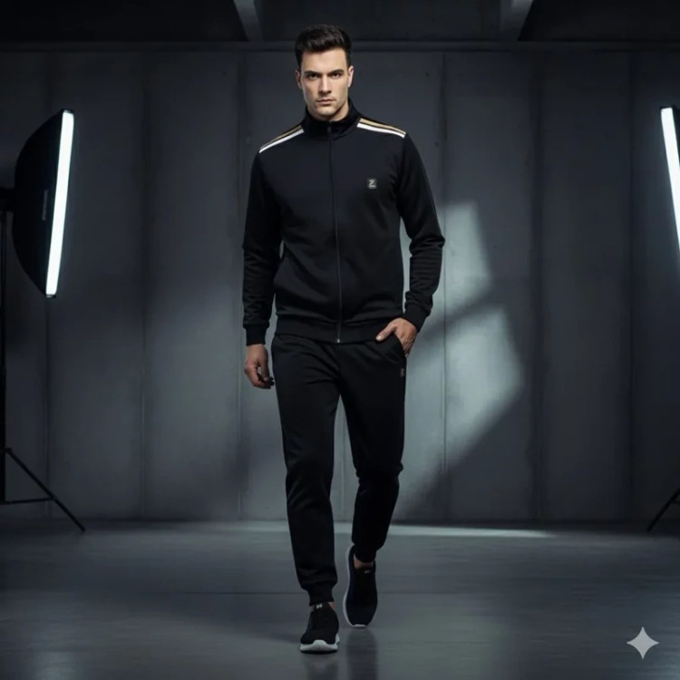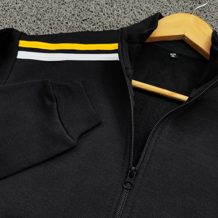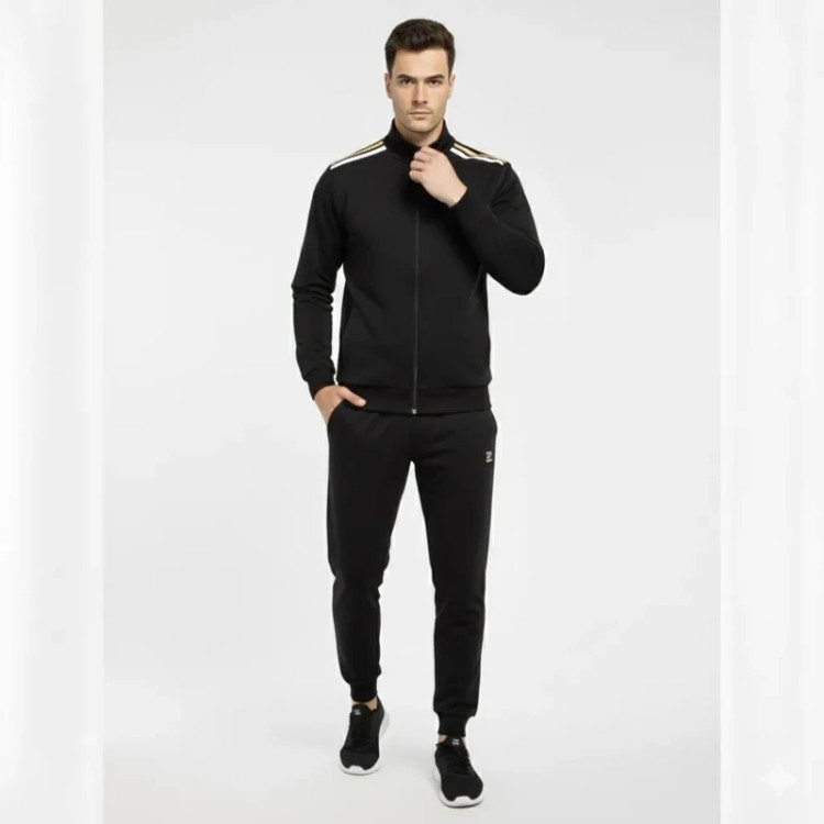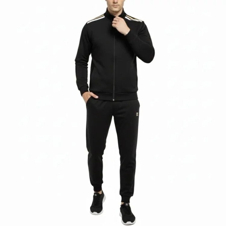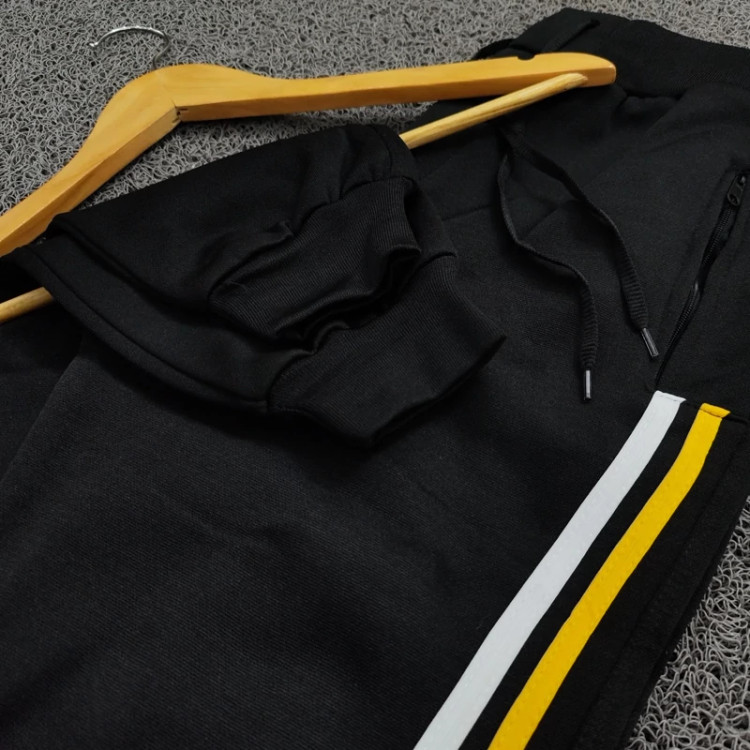 ست گرمکن مردانه پاییزه و زمستانه مشکی با نوار طلایی و سفید